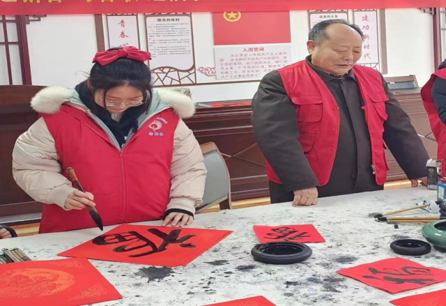 555电影 党员先锋服务队举办“翰墨飘香写福字 迎春送福暖人心”实践活动
