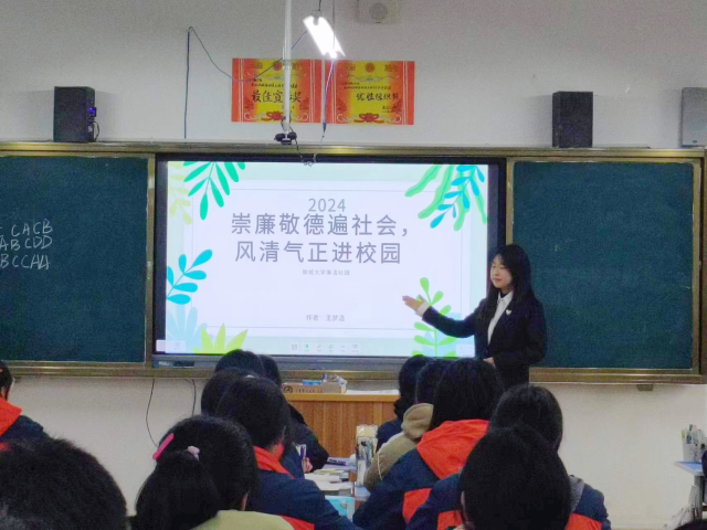 为进一步加强廉洁文化建设,营造风清气正的校园政治生态和育人环境,2月18日,555电影 “清风廉洁”志愿服务队于潍坊市高密市第二中学开展“崇德敬廉遍社会,风清气正进校园”廉洁文化宣讲活动。