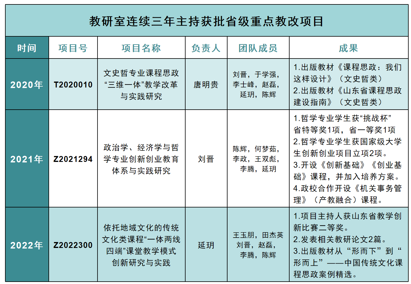 本专业现有专任教师16人,其中教授6人,副教授4人。专任教师中,有校级师德标兵1人,校级教学名师1人,享受国务院政府特殊津贴专家1人,教育部新世纪优秀人才1人,山东省有突出贡献的中青年专家1人,山东省高端智库专家1人,山东省高校青年教师教学竞赛一等奖1人。本专业为校级特色专业,2021年入选山东省一流本科专业。2024年入选首批山东省示范性基层教学组织。课程建设方面,《中国哲学史》《伦理学》《欧洲哲学史》系校精品课程,《美学原理》为国家级一流本科课程和山东省课程思政示范课程。研究平台方面,哲学专业现有山东省当代中国哲学研究基地、天工国学院、论语学研究中心等学科科研平台。