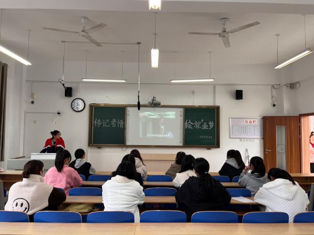 负责人向同学们介绍中国记者节的相关知识,讲述记者精神,并播放著名记者穆青、王冰冰等人在各种场合的采访视频,展示记者工作的艰辛,表达对记者群体的关爱和敬佩。随后,负责人组织开展“我是记者”体验活动,对就业问题进行模拟记者采访。同学们在校园中进行采访,大多数的被采访者认为教师、医生是理想的职业。接着,负责人通过抓阄的方式选取上台分享感悟的同学,同学们上台分享自己未来的就业目标、方向和计划,并就记者行业互相交流自己的看法。国淑涵表示:“通过此次活动,我感受到了记者工作的不易,特别是驻外记者还要克服不良环境问题,我要向他们致敬。”最后,陈秋月表示通过此次活动更加坚定她未来从事记者行业的决心,希望传承新闻工作者的优良传统,为社会事业发声。
